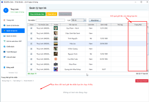 – Tiếp đó bạn theo dõi kết quả task gửi tin nhắn vừa thiết lập xong ở dưới và cột trạng thái ở bảng danh sách bạn bè:
