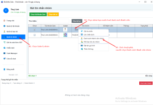 Bước 4. Hoàn thành cài đặt gửi tin nhắn thành viên nhóm, bạn theo dõi kết quả ở cột Kết quả gửi tin: