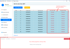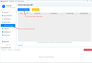 - Bước 1: Mở phần lên, ở menu bạn chọn Gửi tin zalo theo SĐT, sau đó nhập danh sách SĐT của bạn vào phần mềm: